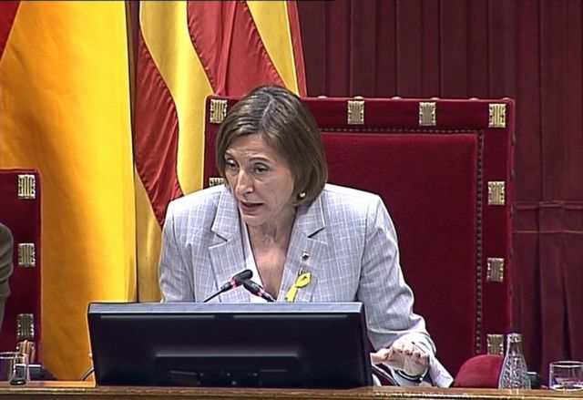 Στην αίθουσα είχαν μείνει μόνο βουλευτές των κομμάτων του κυβερνητικού συνασπισμού Junts pel Si, CUP και Catalunya Si Que Es Pot που συνδέεται με το κόμμα Podemos.