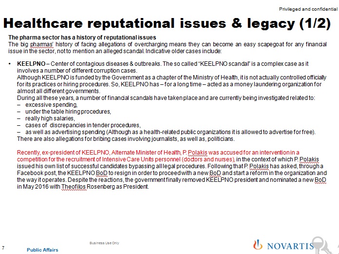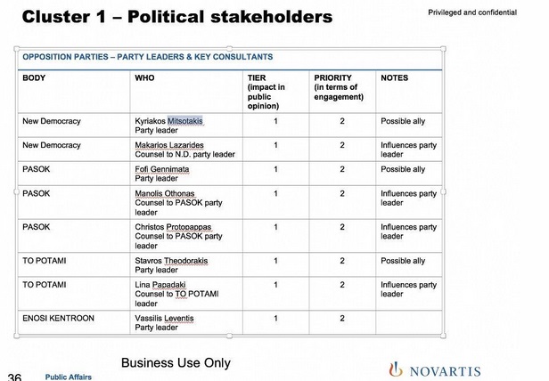 Oπως αναφέρεται σε πολυσέλιδο έγγραφο με ημερομηνία 10 Φεβρουαρίου 2017, το οποίο δίνεται ήδη μεγάλη δημοσιότητα στο σκάνδαλο που εξελίχθηκε επί κυβερνήσεων ΠΑΣΟΚ και ΝΔ και τα ΜΜΕ επισημαίνουν ότι η υπόθεση Novartis μπορεί να είναι «ίσης σημασίας» με αυτή της Siemens.