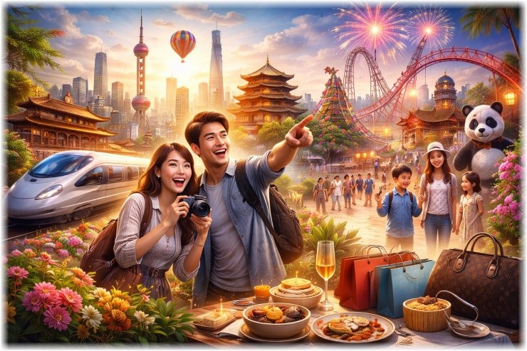 Τα πρώτα στοιχεία από την ταξιδιωτική πλατφόρμα Fliggy, που ανήκει στον όμιλο Alibaba, δείχνουν ότι οι κρατήσεις σε ξενοδοχεία θεματικών πάρκων σχεδόν διπλασιάστηκαν σε σχέση με πέρυσι. Παράλληλα, τα ταξίδια που συνδυάζουν παραδοσιακές παραστάσεις και χειροτεχνικές δραστηριότητες αυξήθηκαν κατά περίπου 40%. Οι νεότερες γενιές δεν αρκούνται σε μια απλή μετακίνηση, αλλά επιδιώκουν βαθύτερη εμβάθυνση στον τοπικό πολιτισμό, συμμετοχή σε καλλιτεχνικές δράσεις και αυθεντικές δραστηριότητες.