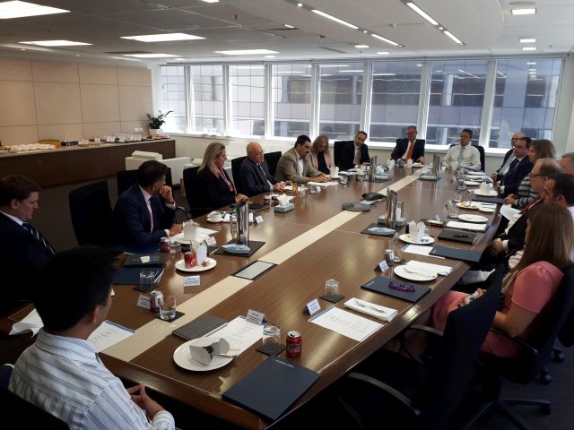 Ο Υπουργός κατά την παραμονή του στο Σύδνεϋ συναντήθηκε με το υψηλόβαθμό στέλεχος του Εργατικού κόμματος Αυστραλίας και σκιώδη Ομοσπονδιακό Υπουργό Εμπορίου και Επενδύσεων κ. Jason Clare με τον οποίο αντάλλαξαν απόψεις σχετικά με τις επενδύσεις σε υποδομές μέσω δημόσιων και ιδιωτικών συμπράξεων.