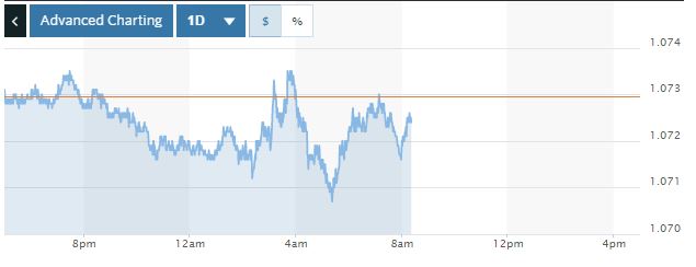 Για την ώρα το ευρώ υποχωρεί οριακά χαμηλότερα και κινείται στο 1,0725 στην ισοτιμία με το δολάριο.